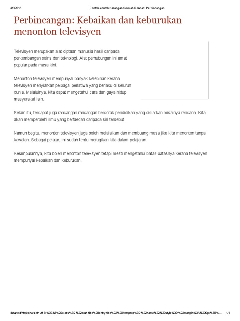 Contoh Contoh Karangan Sekolah Rendah Perbincangan Kebaikan Dan Keburukan Menonton Televisyen Pdf