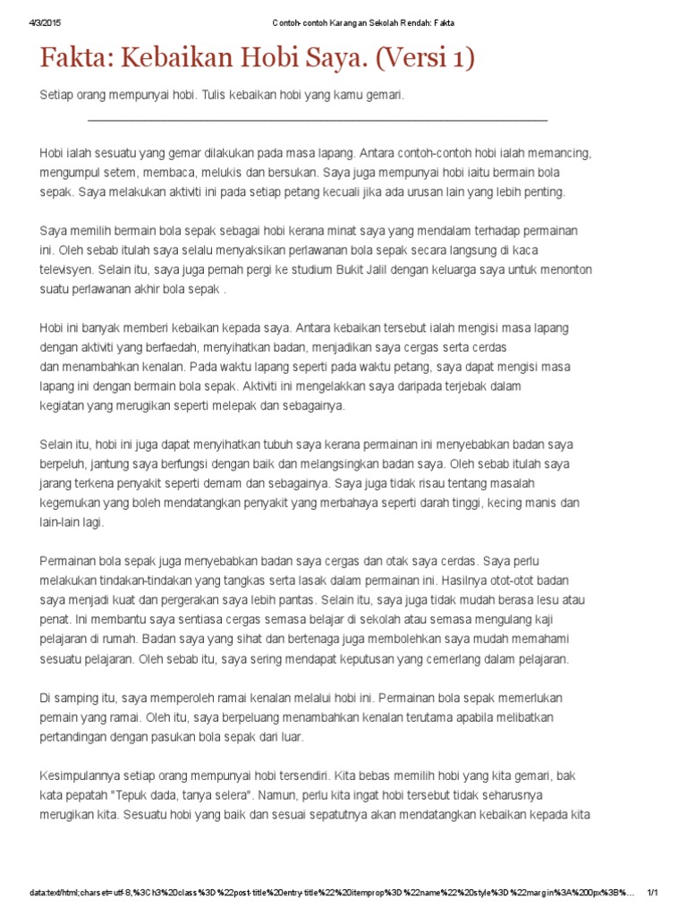 Contoh Contoh Karangan Sekolah Rendah Fakta Kebaikan Hobi Saya Pdf